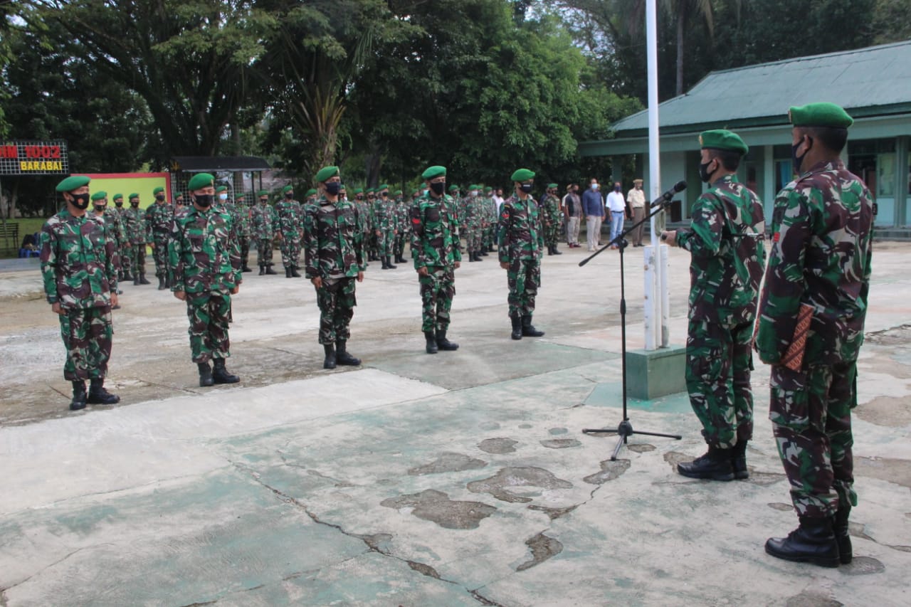 BARABAI-Sebanyak 12 orang anggota Kodim 1002/Barabai mendapat kenaikan pangkat satu tingkat lebih tinggi dari pangkat semula, terhitung mulai tanggal 01 April 2021.
