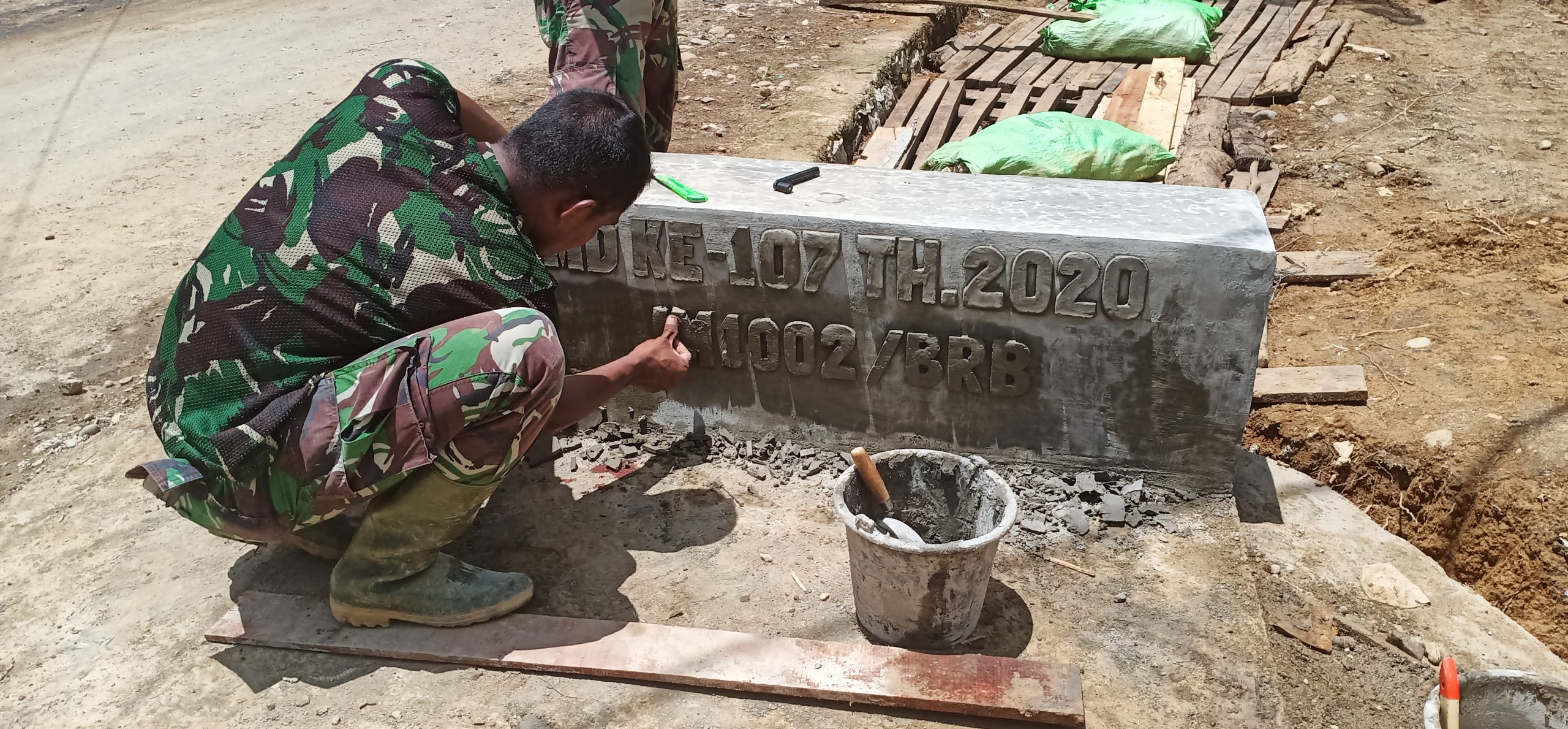 Kreatif Anggota Satgas TMMD ke-107 Kodim 1002/Barabai Buat Relief.