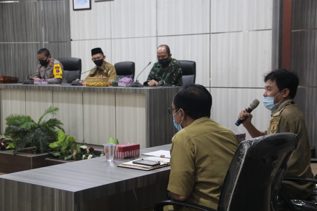 BARABAI-Komandan Kodim 1002/Barabai Letkol Inf Muh Ishak H. Baharuddin, S.I.P.,M.I.,Pol menghadiri Rapat Koordinasi penanganan Covid-19 bersama Unsur Forkopimda di Auditorum Kantor Bupati Hulu Sungai