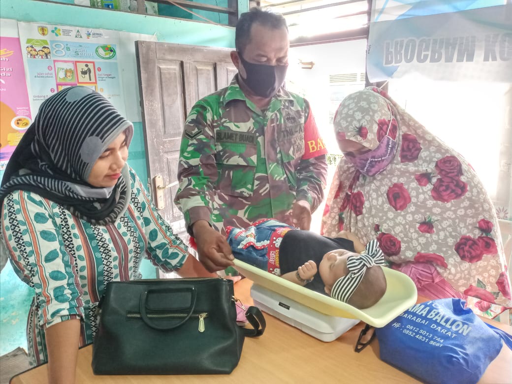 Dukung Balita Sehat, Serda Slamet Buadi Dampingi Kegiatan Posyandu