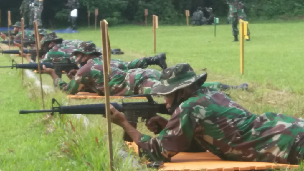 BARABAI-Dalam rangka mengasah dan meningkatkan naluri prajurit Kodim 1002/Barabai dengan latihan menembak senapan dan pistol. Latihan menembak dilaksanakan di lapangan Tembak Yonif 621/Manuntung