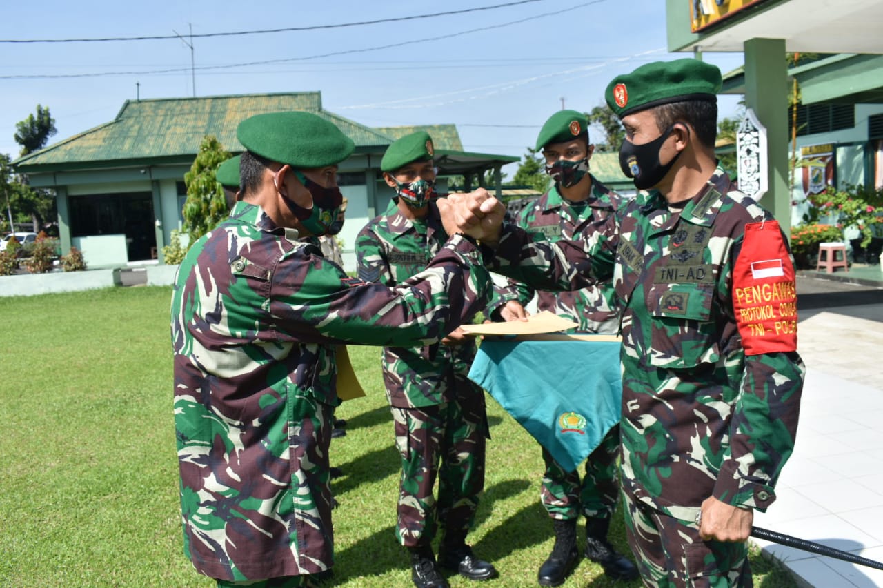 BARABAI-Komandan Kodim 1002/Barabai Letkol Inf Muh.Ishak H.Baharuddin, S.I.P.,M.I.,Pol menerima korp raport pindah Satuan dan Masa Persiapan Pensiun (MPP) anggota bertempat di depan Makodim Barabai.Kamis