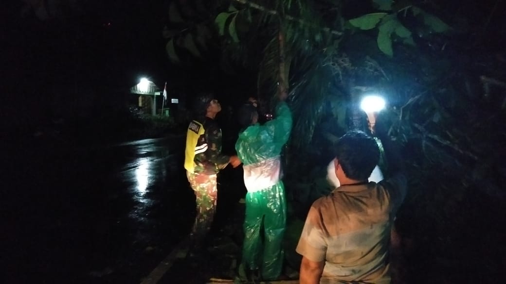 Babinsa Birayang Bersama Warga Evakuasi Pohon Tumbang