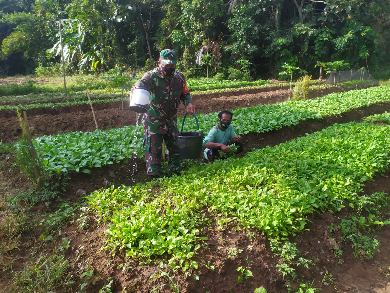 BARABAI-Babinsa Koramil 1002-03/Haruyan Serda Sutoyo melaksanakan kegiatan Pendampingan perawatan kepada petani sawi di desa Sungai Harang Kecamatan Haruyan Kabupaten Hulu Sungai Tengah (HST),