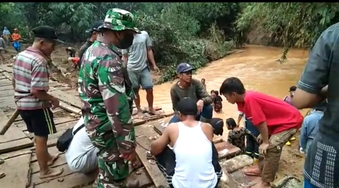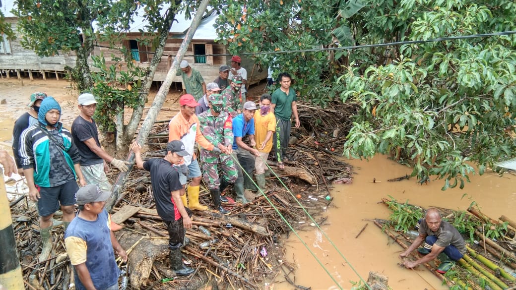 Babinsa Koramil 07/Pagat Buka Akses Jalan, Gotong Royong Bangun Jembatan Darurat