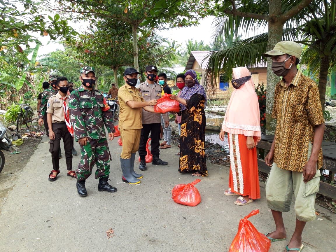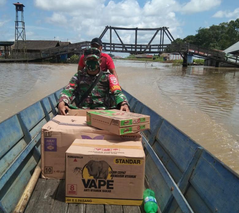 Babinsa Kasarangan Distribusikan Logistik di Desa Rantau Bujur