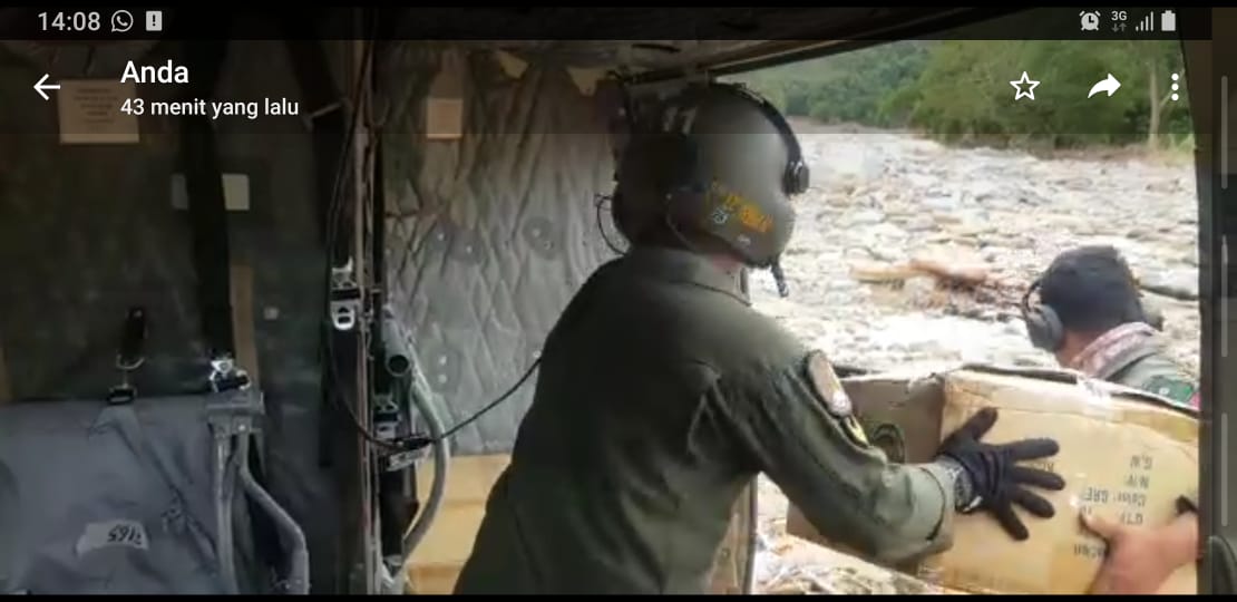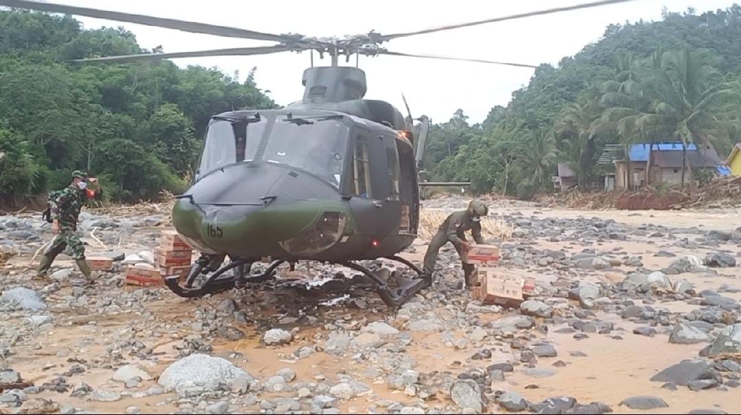 Heli BELL 412 EP Salurkan Bantuan Kasad Untuk Korban Banjir Dan Tanah Longsor di HST