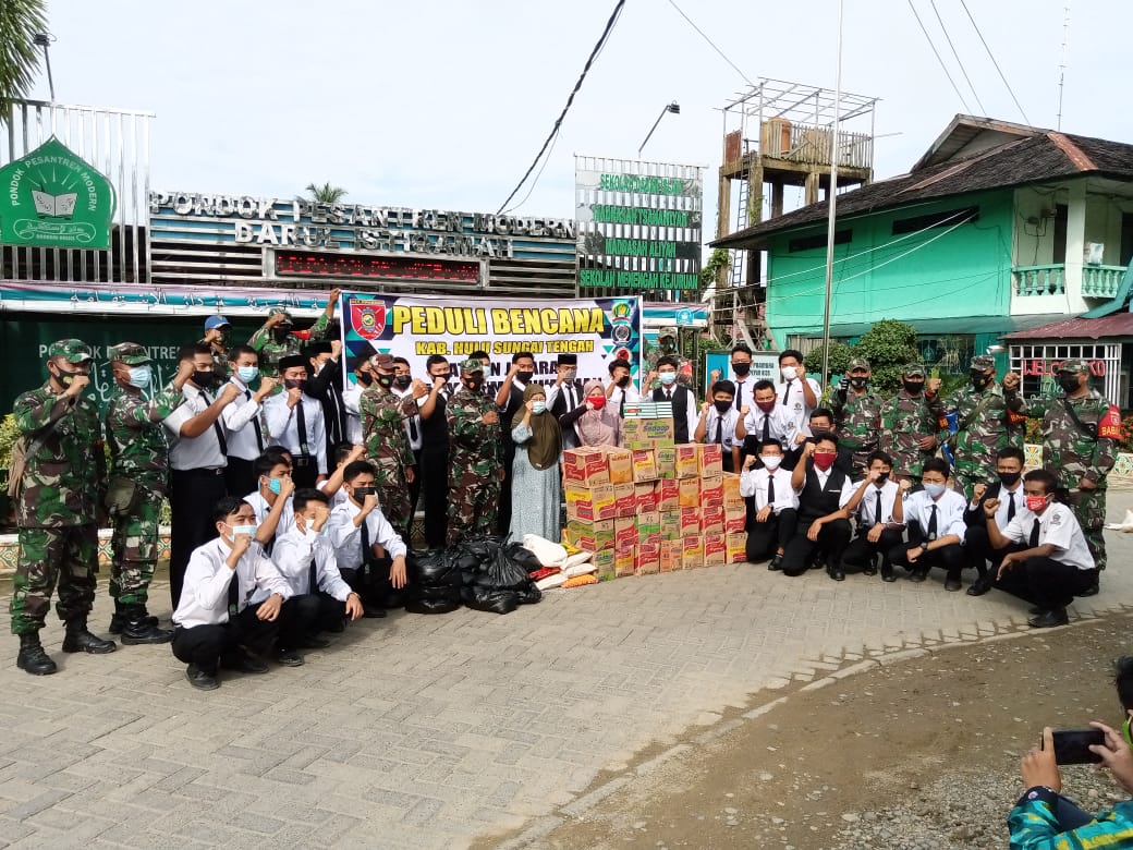 BARABAI-Berturut-turut Kodim 1002/Barabai mendistribusikan bantuan kepada warga masyarakat Hulu Sungai Tengah yang terdampak bencana banjir. Hari ini Tiga Pondok Pesantren (Pondok Pesantren Darul Istiqomah