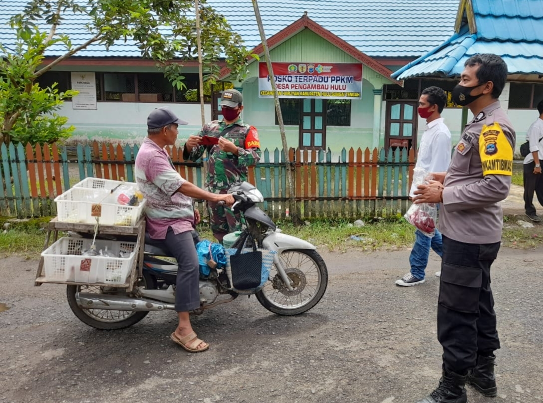 BARABAI-Pilar Haruyan, Plh.Danramil 1002-03/Haruyan Peltu Henri Murpianto, Camat Haruyan H.M. Yarkani, S.Sos dan Kapolsek Haruyan Ipda Akhmad Junaidi, S.Sos melaksanakan pemantaun langsung kegiatan PPKM