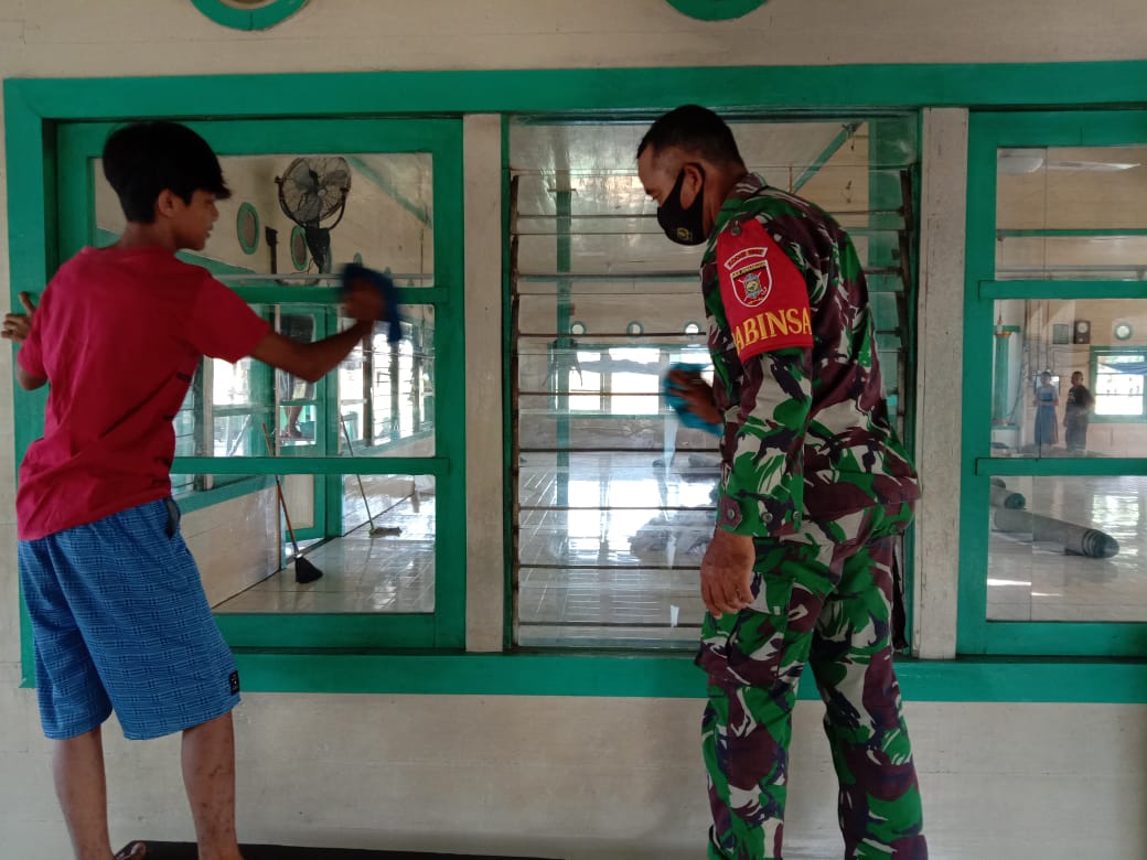 BARABAI-Dalam rangka menciptakan lingkungan yang bersih, Babibsa Kodim 1002/Barabai, Serka Saipul Fadillah anggota Koramil 1002-08/Kasarangan melaksanakan pembersihan tempat Ibadah.Jum’at (23/04). Pembersihan tempat ibadah dilakukan