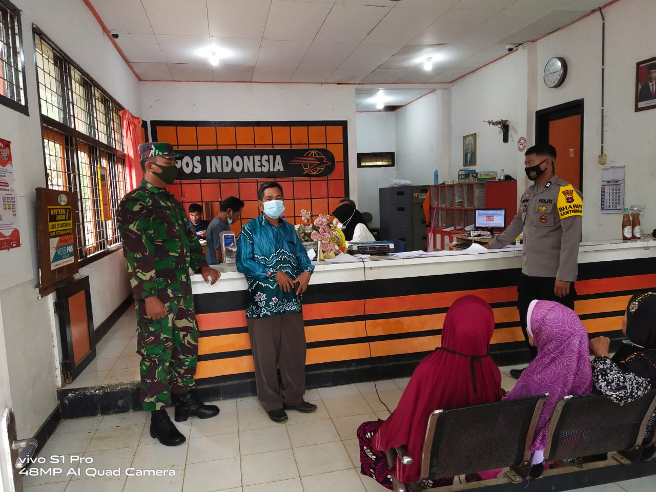 Babinsa dan Bhabinkamtibmas Lakukan Pendampingan Penyaluran BST dan Sosialisasikan Protokol Kesehatan