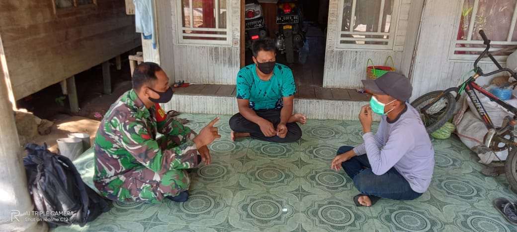 Babinsa Kodim Barabai Sosialisasikan Prokes dan Bagikan Masker Kepada Warga
