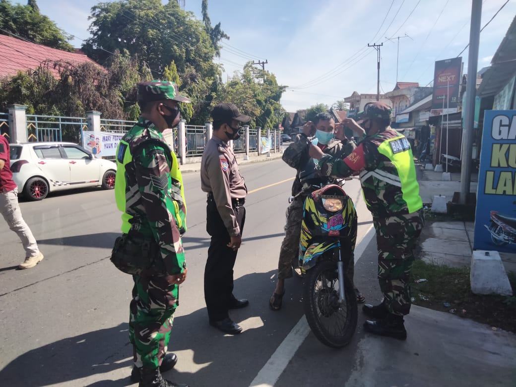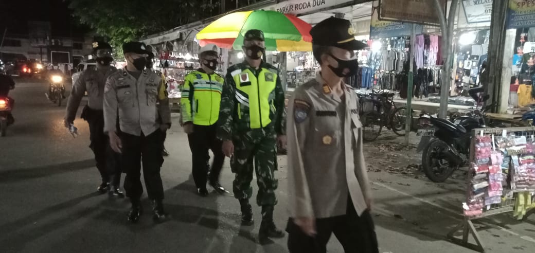 BARABAI-Giat Patroli Tim Gabungan HST melakukan Penegakkan Protokol Kesehatan untuk mencegah penyebaran wabah Virus Corona COVID-19 sasar kawasan pasar Keramat Barabai Kecamatan Barabai