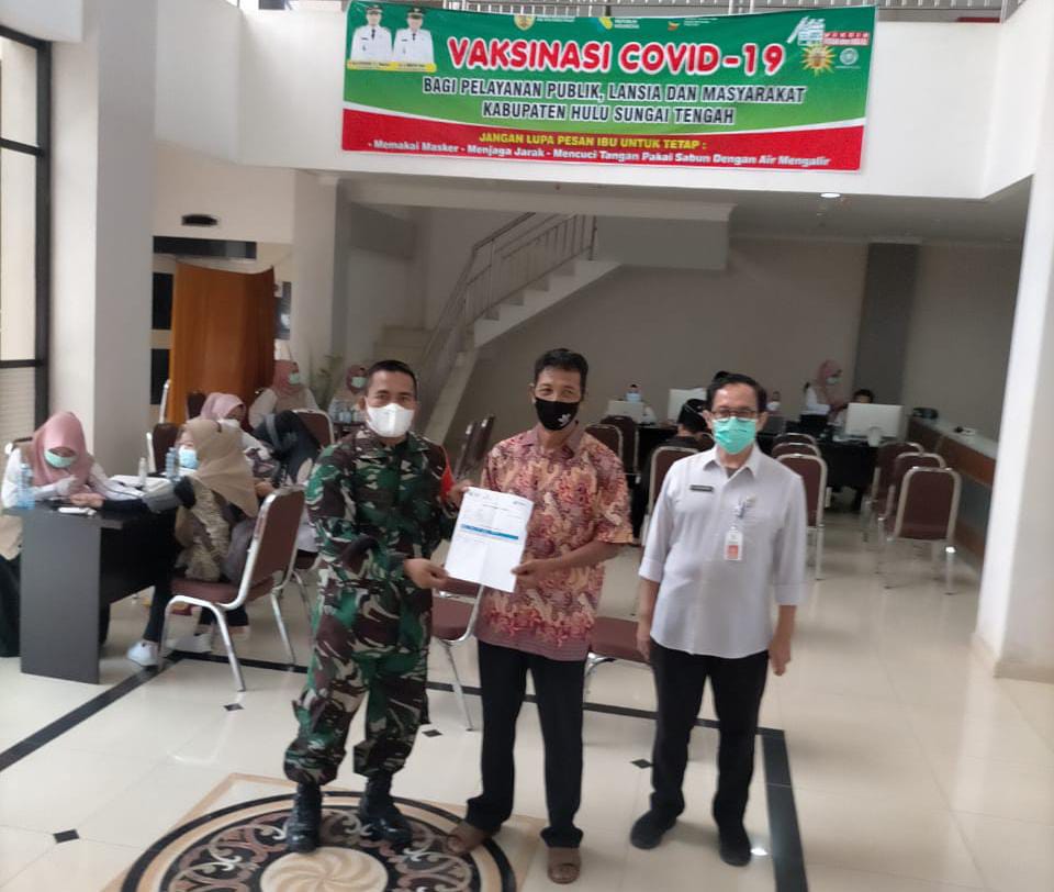 BARABAI-Sebagai bagian dari upaya bersama untuk mengakhiri wabah virus Covid-19 di Indonesia yang telah berlangsung satu tahun lamanya. Kodim 1002/Barabai bekerjasama dengan dinas Kesehatan