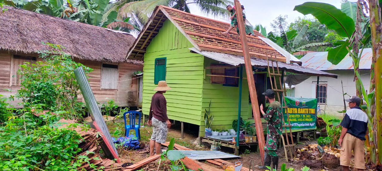 Karya Bakti TNI, Koramil Jajaran Kodim Barabai Laksanakan Bedah Rumah
