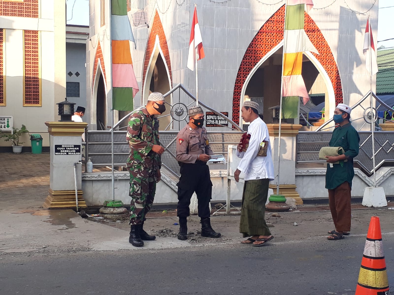 Sinergi Babinsa-Bhabinkamtibmas Terapkan Prokes Pelaksanaan Sholat Idul Adha
