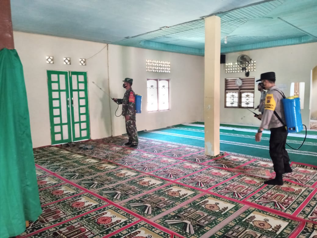 Babinsa Koramil 06/Barabai Bersama Bhabinkamtibmas Semprot Disinfektan Tempat Ibadah