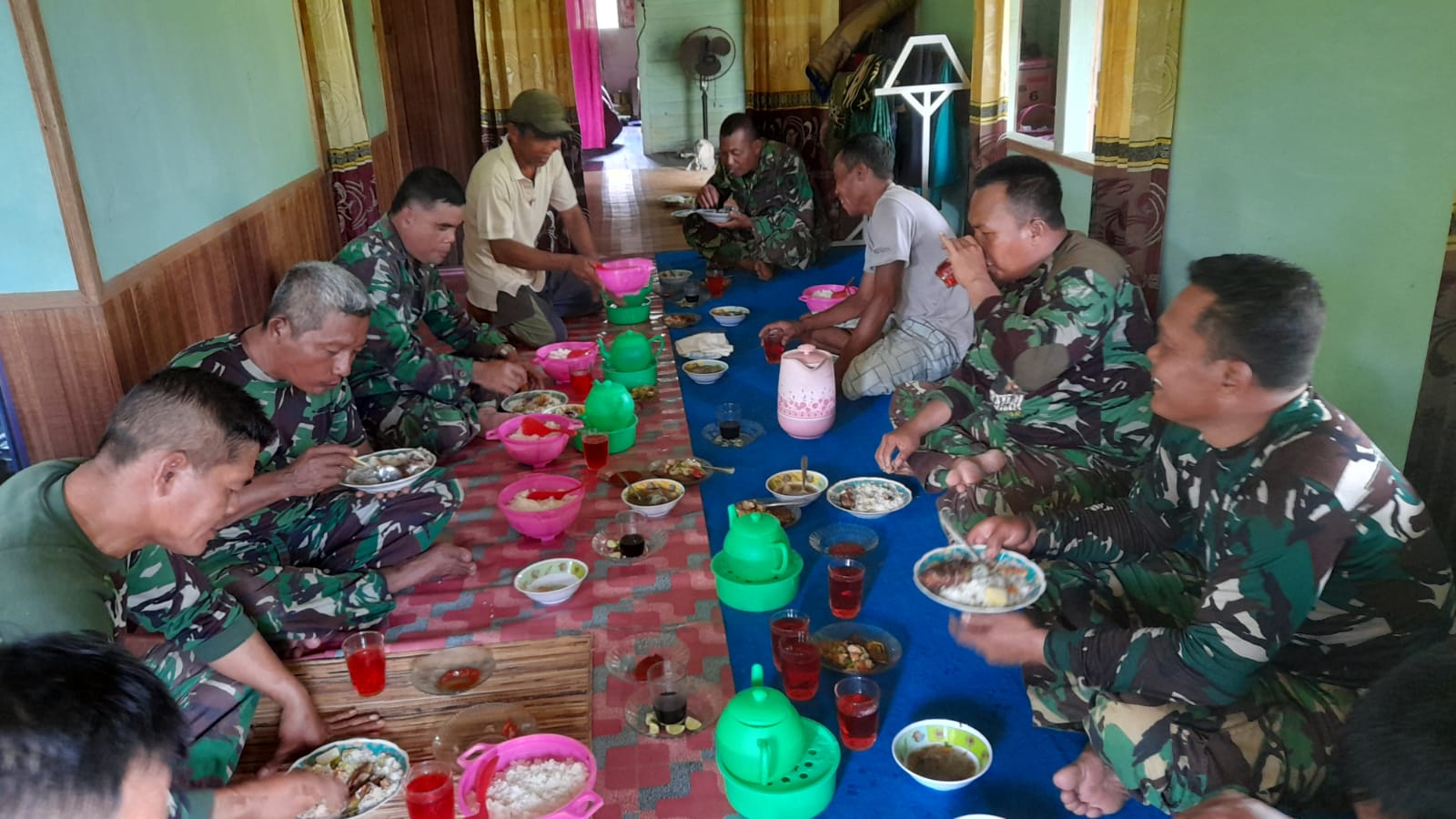 HULU SUNGAI TENGAH-Kebersamaan antara Satgas dan warga dalam melaksanakan kegiatan TNI Manunggal Membangun Desa (TMMD) Ke-112 Kodim 1002/Hulu Sungai Tengah (HST) di Desa Rantau