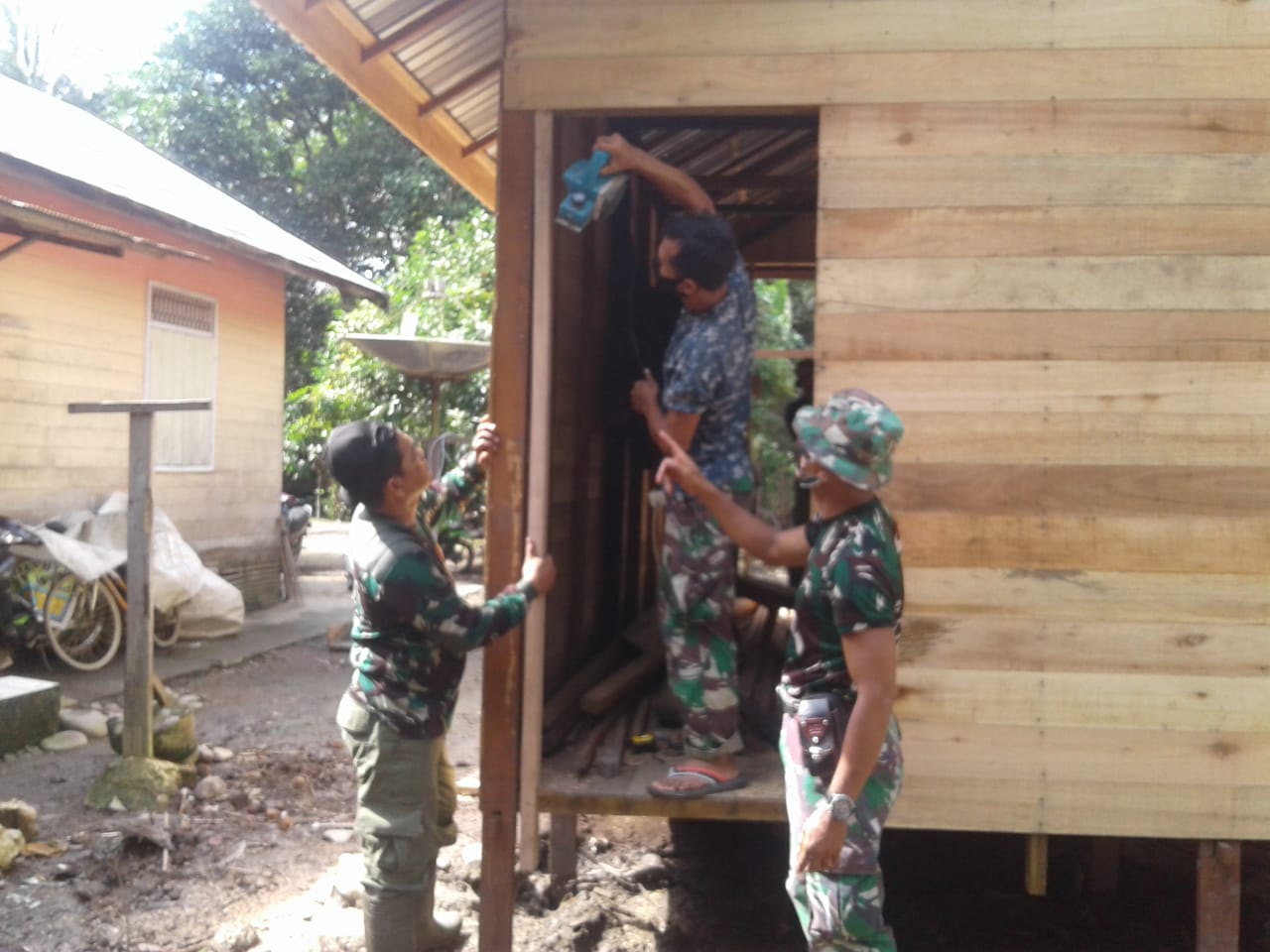 HUlU SUNGAI TENGAH. Pekerjaan rehab Rumah Tidak Layak Huni (RTLH) program TMMD 112 Hulu Sungai Tengah (HST), di rumah Rusdi (43), warga Desa Rantau