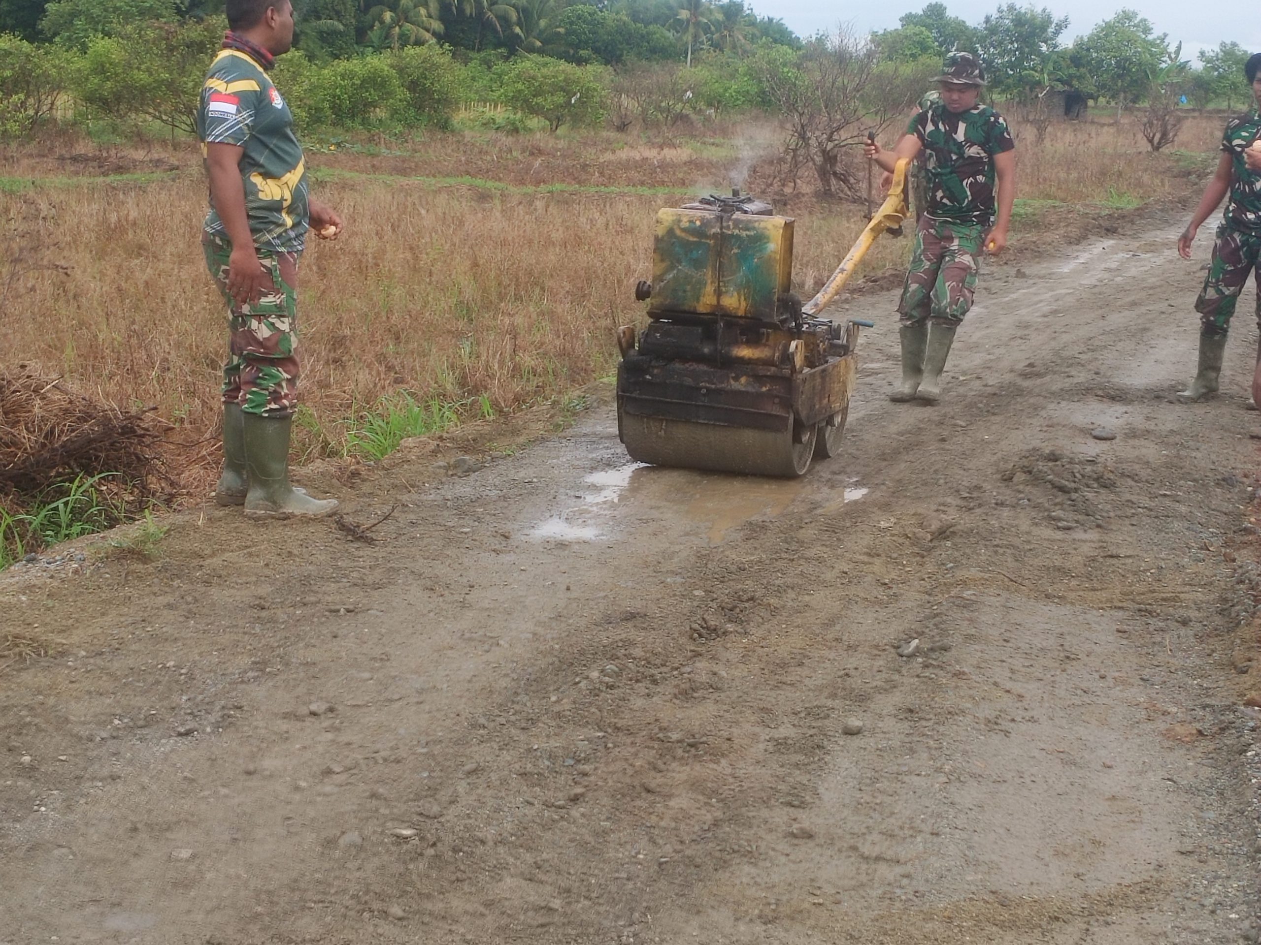 Baby Roller Vibratory Terus Dipacu Satgas TMMD Walau Cuaca Gerimis