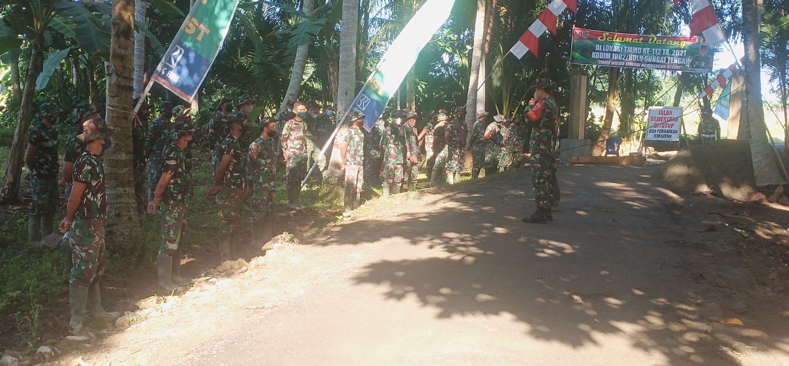 HULU SUNGAI TENGAH-Momentum pelaksanaan TNI Manunggal Membangun Desa (TMMD) Ke-112 Kodim 1002/Hulu Sungai Tengah (HST) Tahun 2021 di Desa Rantau Keminting, Kecamatan Labuan Amas
