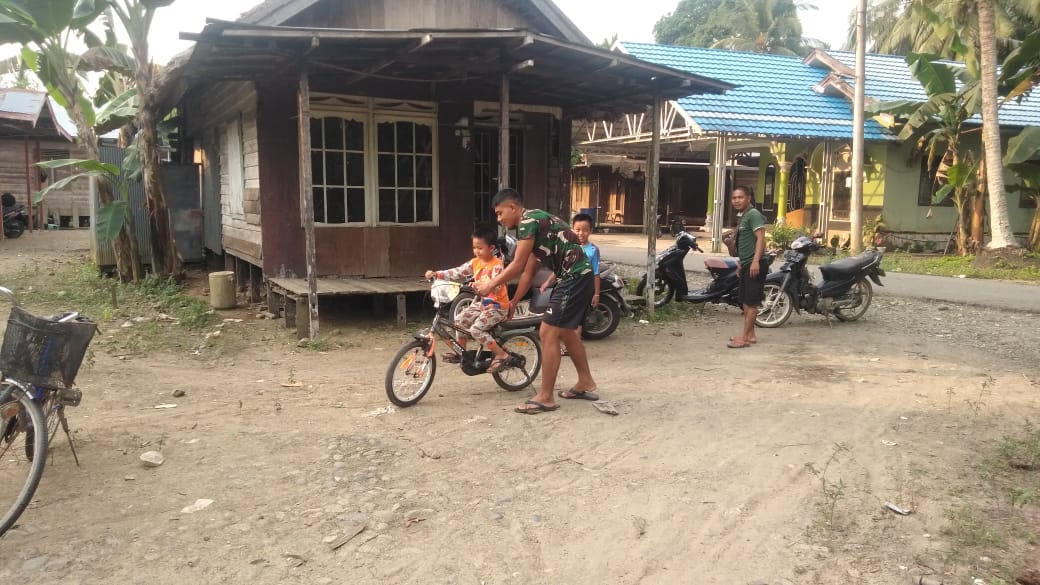 HULU SUNGAI TENGAH-Keberadaan anggota satgas TMMD ke-112 Kodim 1002/Hulu Sungai Tengah (HST) di Desa Rantau Keminting rupanya tidak hanya dirasakan oleh orang dewasa saja,