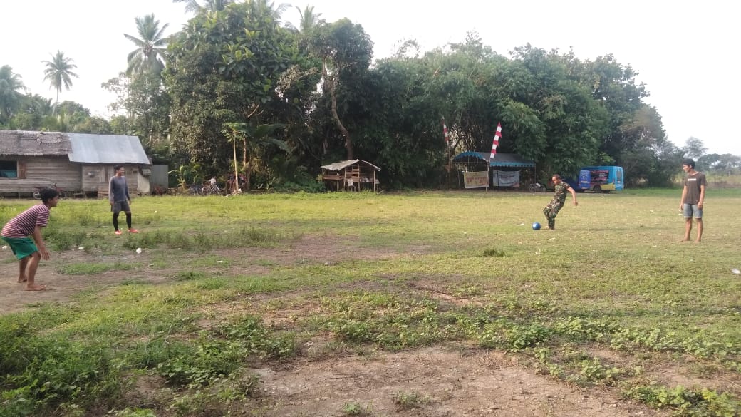 Bersama Anak – anak, Satgas TMMD Asik Bermain Sepak Bola