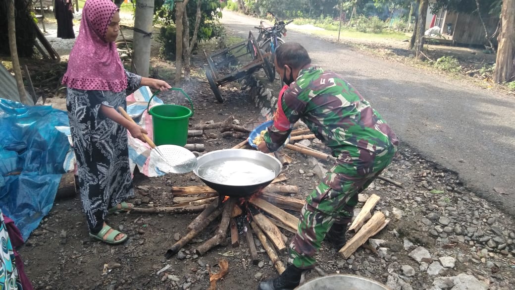 Satgas TMMD ikut Memasak, Bantu Warga Menyiapkan Kegiatan Syukuran