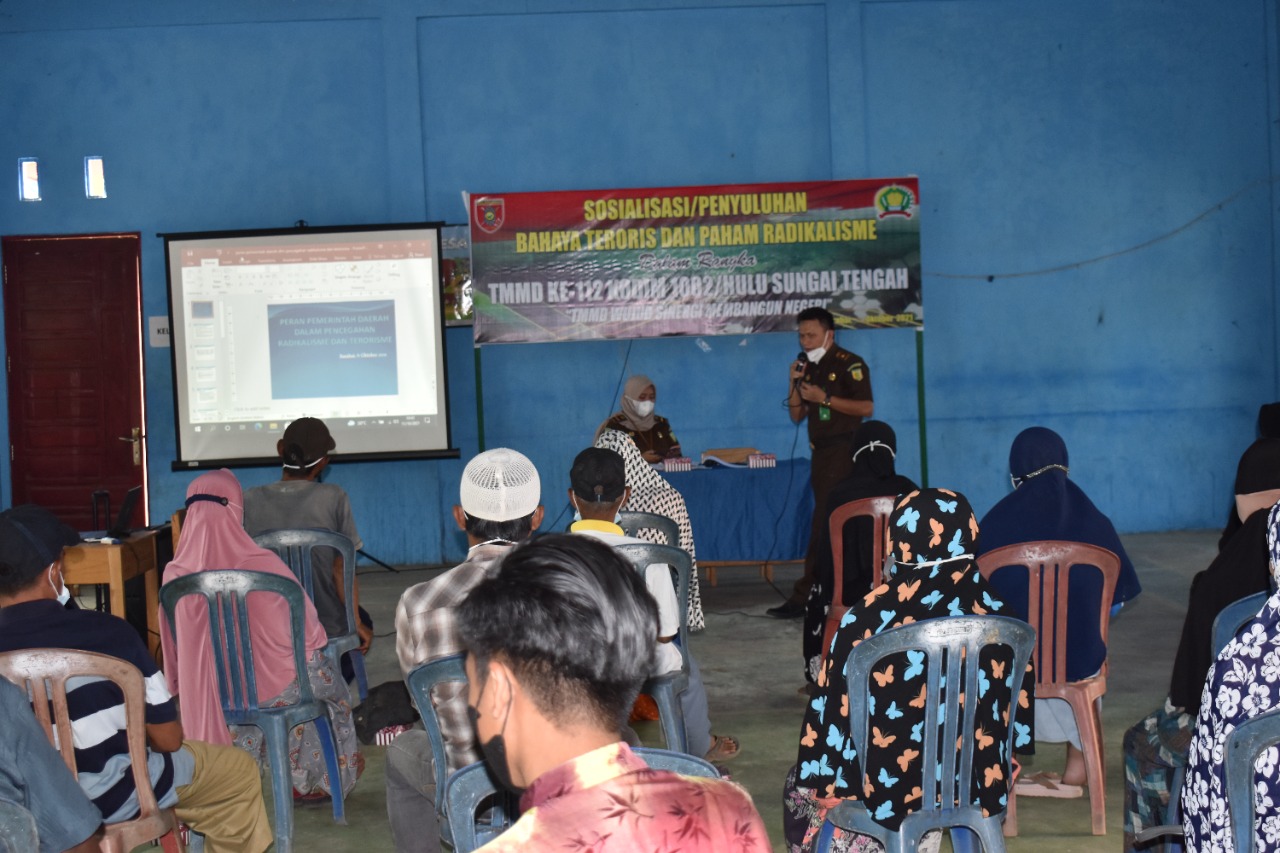 HULU SUNGAI TENGAH–Satgas TMMD Ke-112 Kodim 1002/Hulu Sungai Tengah (HST), menyelenggarakan kegiatan penyuluhan bahaya radikalisme dan terorisme kepada masyarakat Desa Rantau Keminting, Kecamatan Labuan