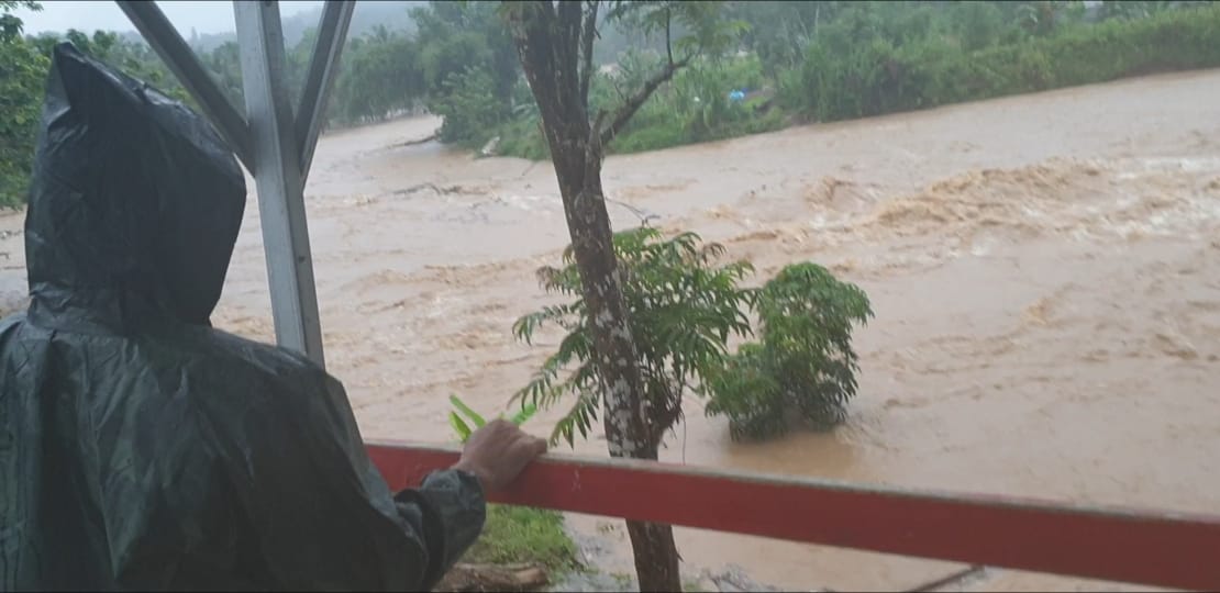 BARABAI-Kembali hujan mengguyur Hulu Sungai Tengah dengan intensitas sedang sejak malam hingga pagi membust debit air sungai Barabai kembali meningkat. “Dari laporan Babinsa
