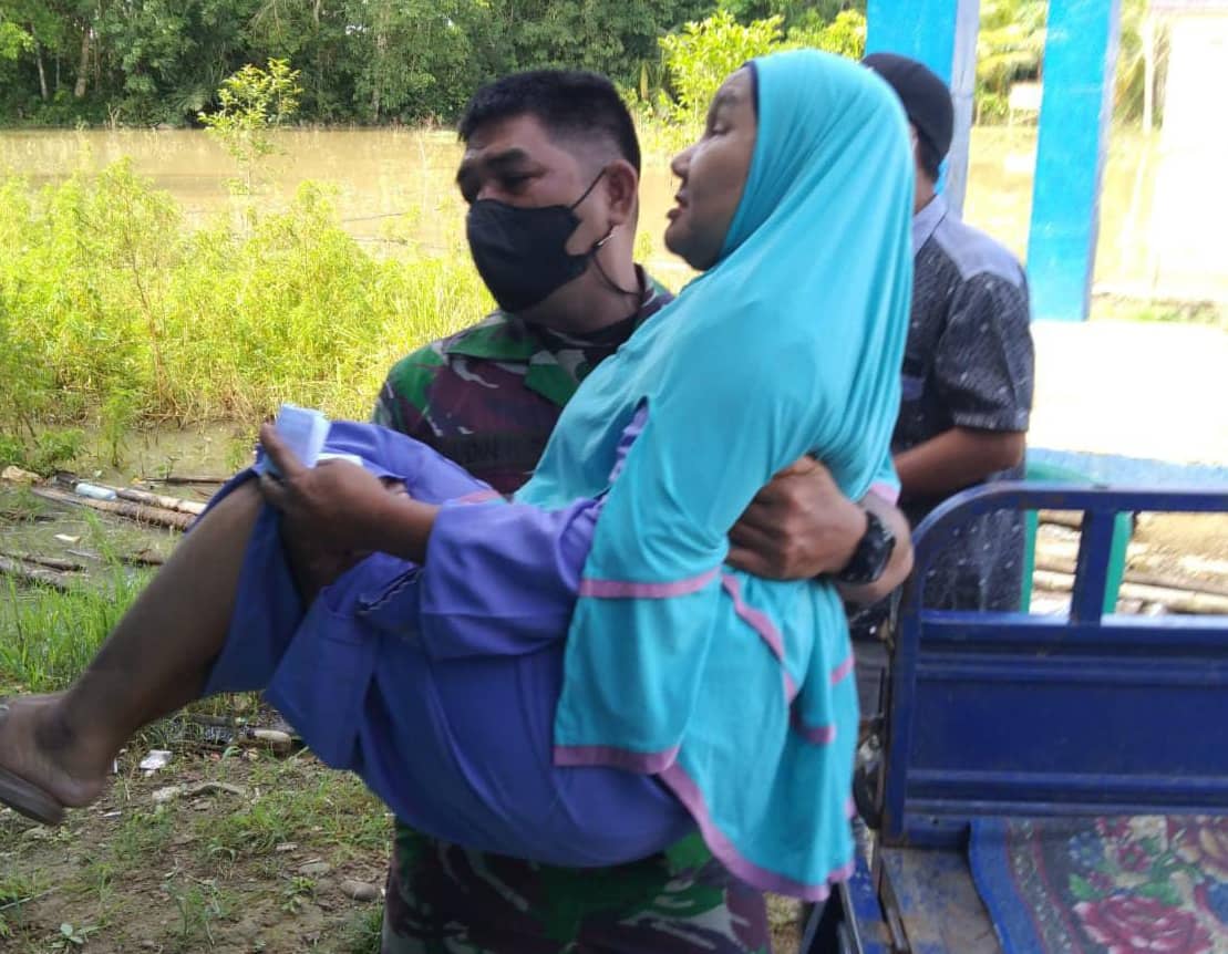 Anggota Kodim 1002/HST Evakuasi Warga Terdampak Banjir