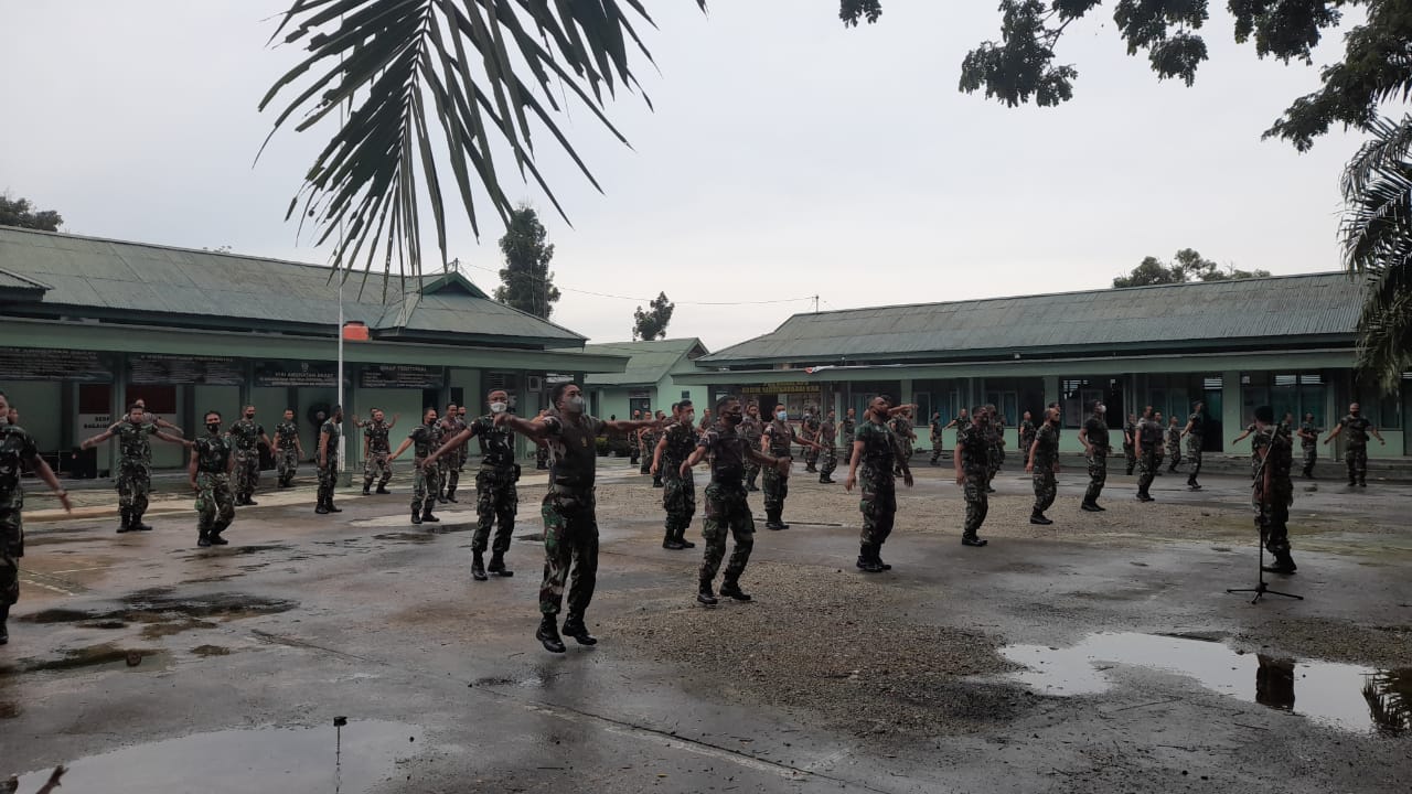 BARABAI-Dalam rangka mendukung tugas pokok satuan, anggota Kodim 1002/HST rutin melakukan pembinaan kesegaran jasmani baik di makodim maupun di koramil-koramil. Seperti hari ini, anggota