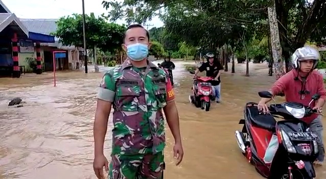 Barabai-Dandim 1002/HST Letkol Inf Muh Ishak HB menyampaikan kepada seluruh anggota untuk waspada tetapi jangan panik menyikapi meningkatnya air Sungai Barabai yang mulai menggenangi