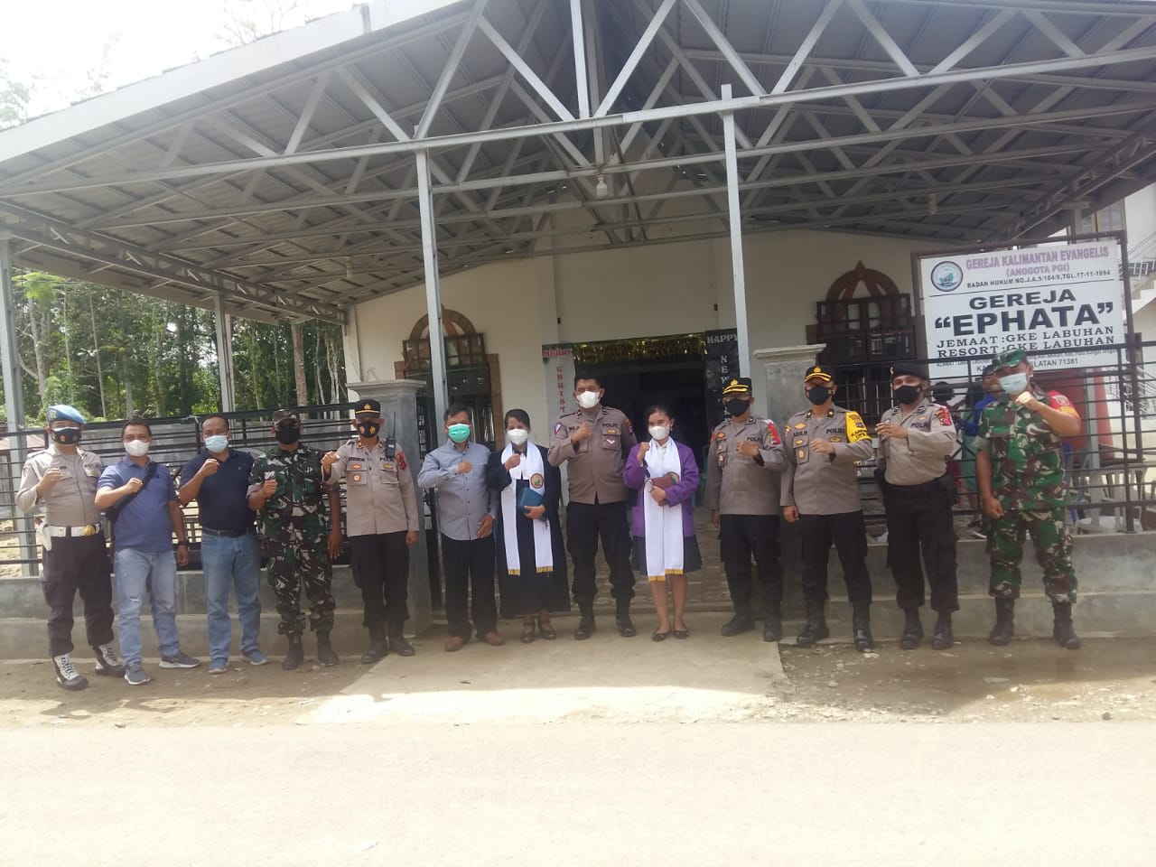 BARABAI-Personel gabungan TNI-Polri dari Kodim 1002/HST dan Polres HST melaksanakan pengamanan kegiatan Ibadah tahun baru umat nasrani di Gereja Kalimantan Evangelis (GKE) EPHATA