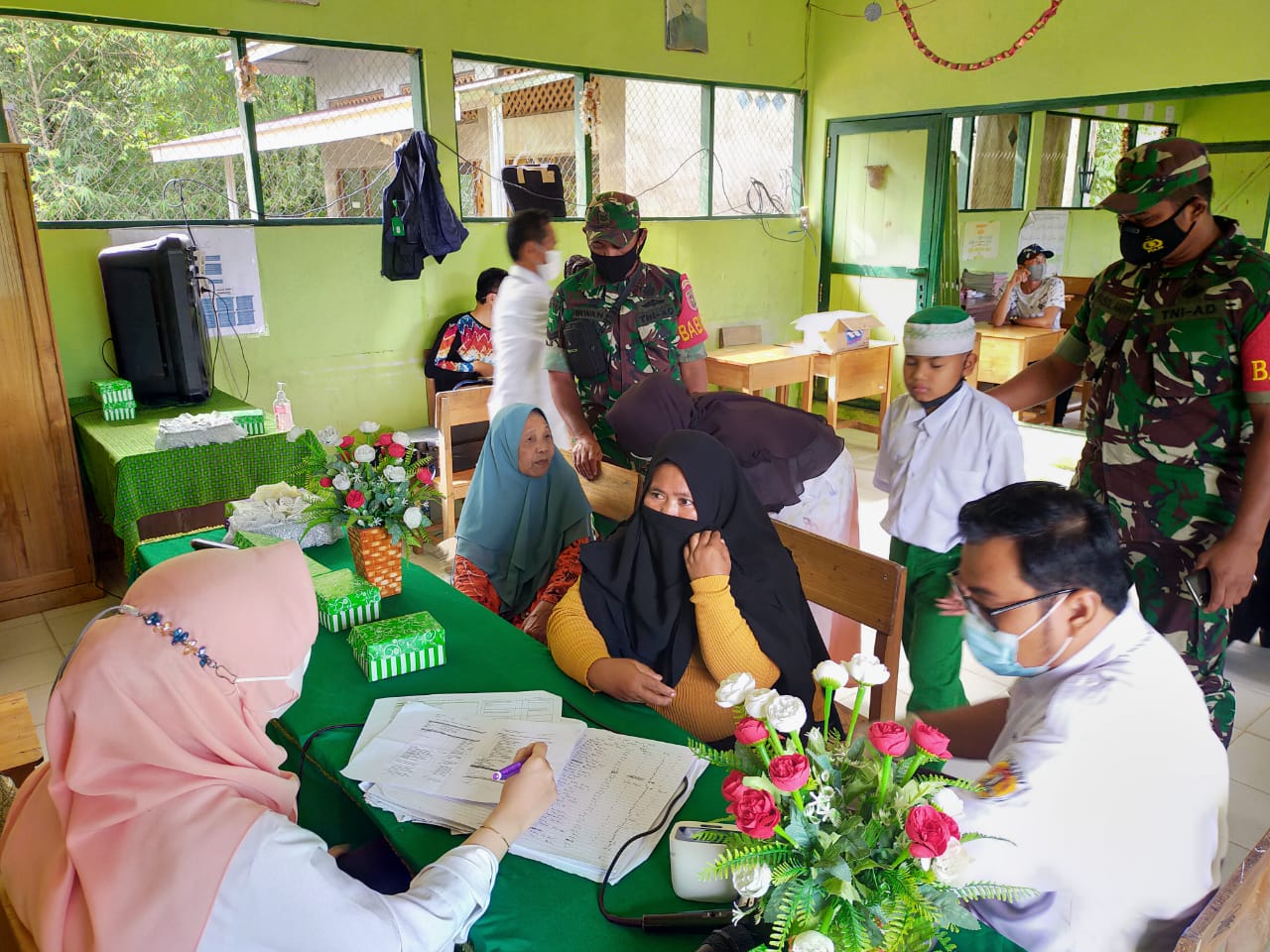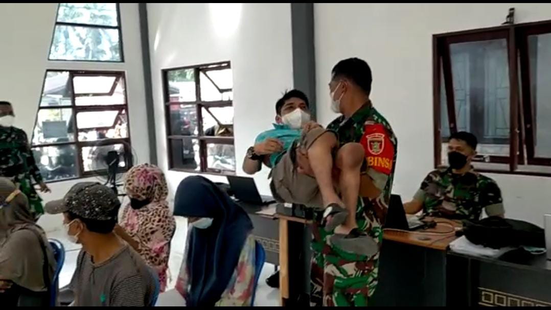 BARABAI-Dalam rangka mendukung program vaksinasi anak usia 6 sampai 11 tahun, Babinsa jajaran Kodim 1002/HST bersama anggota Bhabinkamtibmas terus lakukan pendapingan guna memberikan rasa