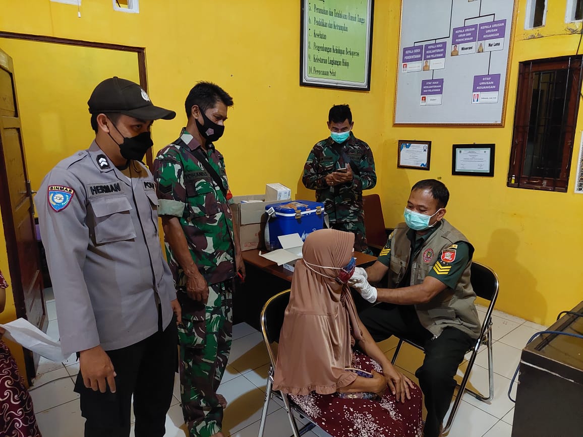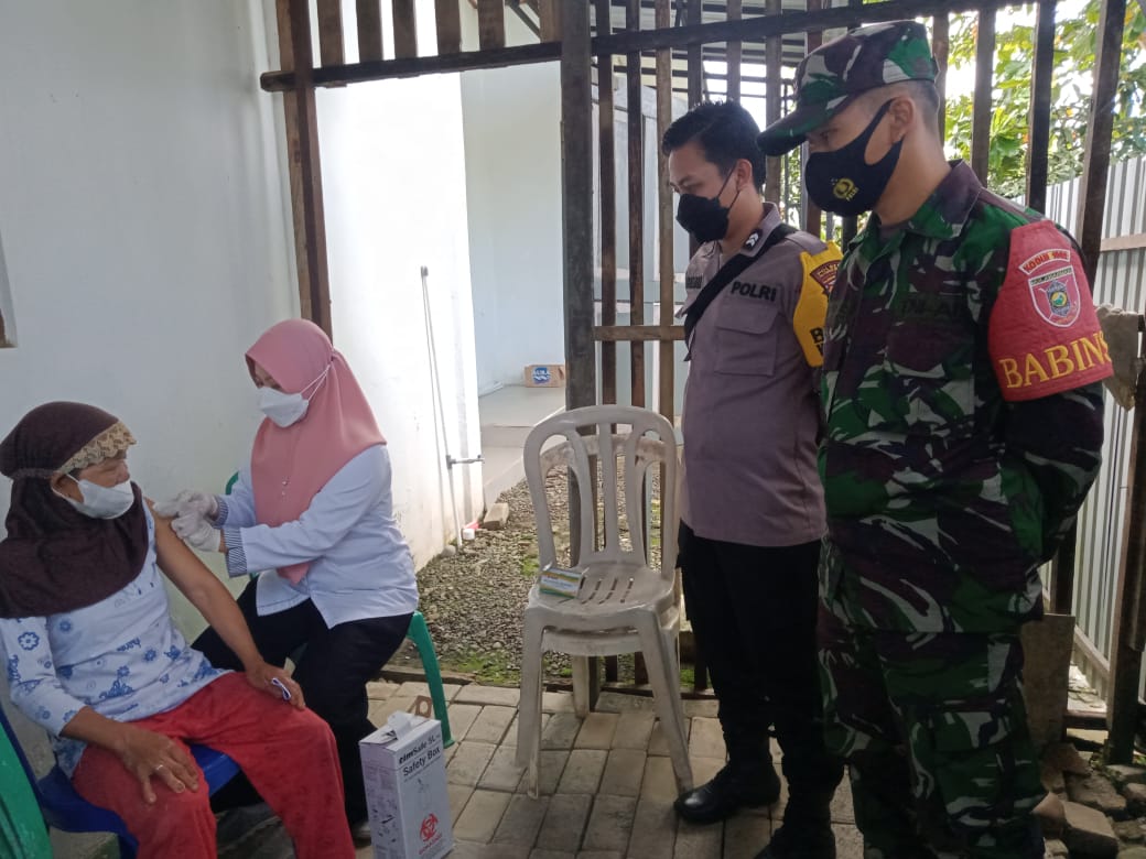 Babibsa Koramil 01/Bas dan Bhabinkamtibmas Pengamanan Penyaluran BST dan Vaksin