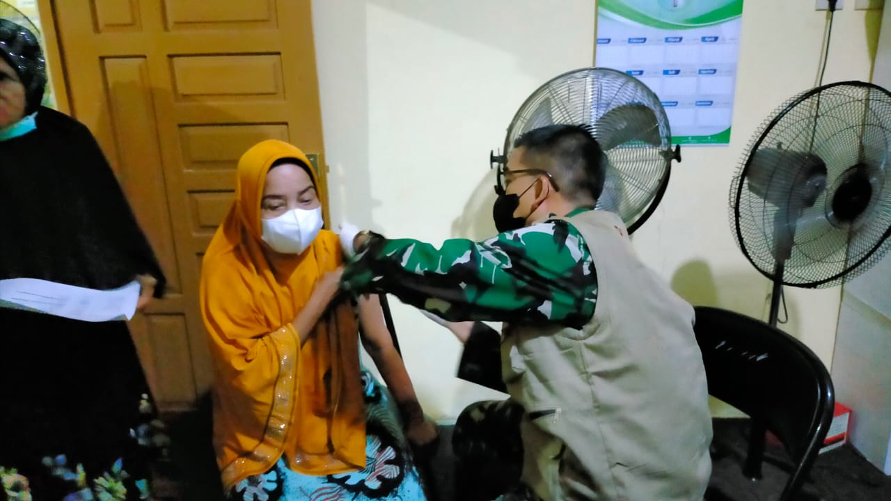 BARABAI-Tak kenal Lelah Tim Mobile Kodim 1002/HST melaksanakan vaksinasi kepada warga masyarakat dalam rangka mendukung percepatan pencapaian vaksinasi oleh Pemerintah Daerah Hulu Sungai Tengah.