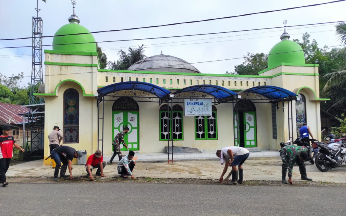 Gotong Royong Bersih-Bersih Masjid di Kampung Pancasila Koramil 06/Barabai