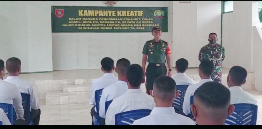 BARABAI-Komandan Kodim 1002/HST Letkol Kav Gagang Prawardhana.S.I.P.,M.Han didampingi Plh.Pasipers Kodim 1002/HST Kapten Inf Rudi Hartono melakukan kampanye kreatif dalam rangka penerimaan TNI-AD tahun 2022.