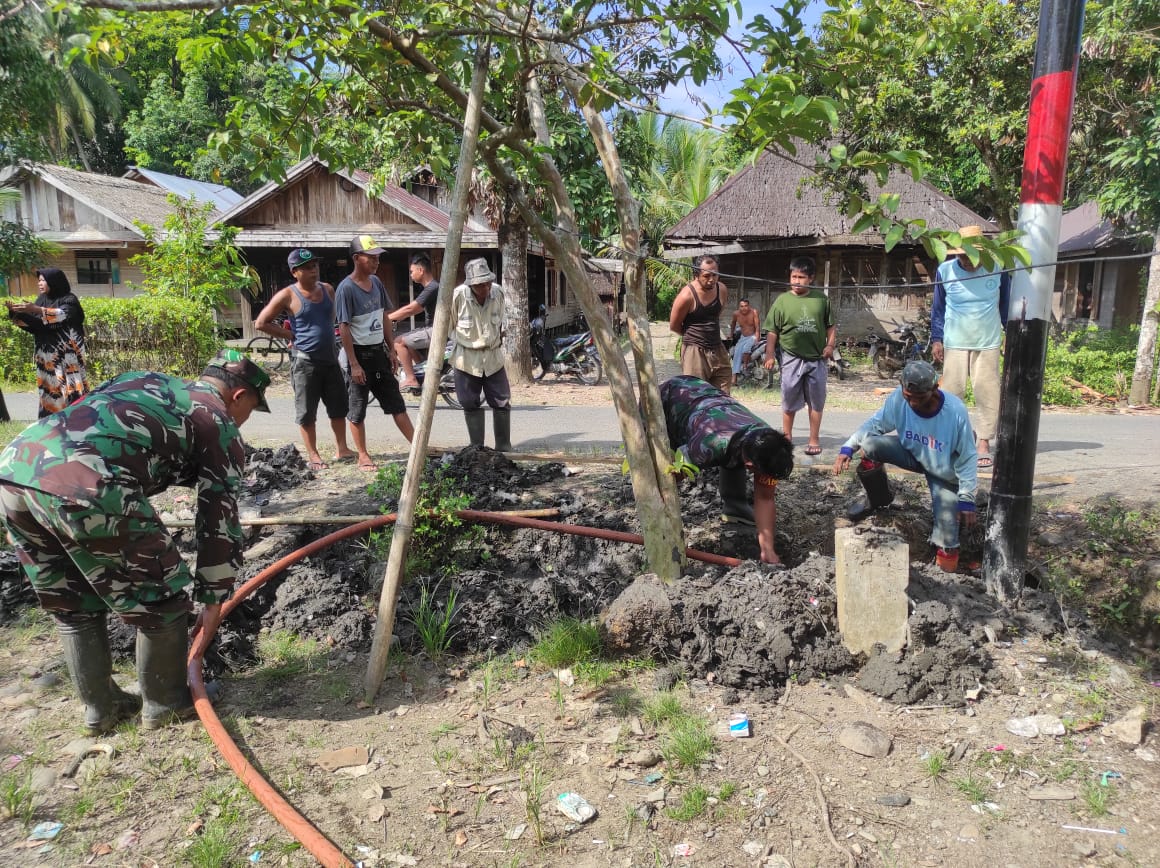 BARABAI-Sebagai wujud kemanunggalan TNI dengan rakyat, Bintara Pembina Desa atau Babinsa bersama masyarakat selain bersinergi dalam menjaga keamanan lingkungan, juga dalam pembangunan fasilitas di