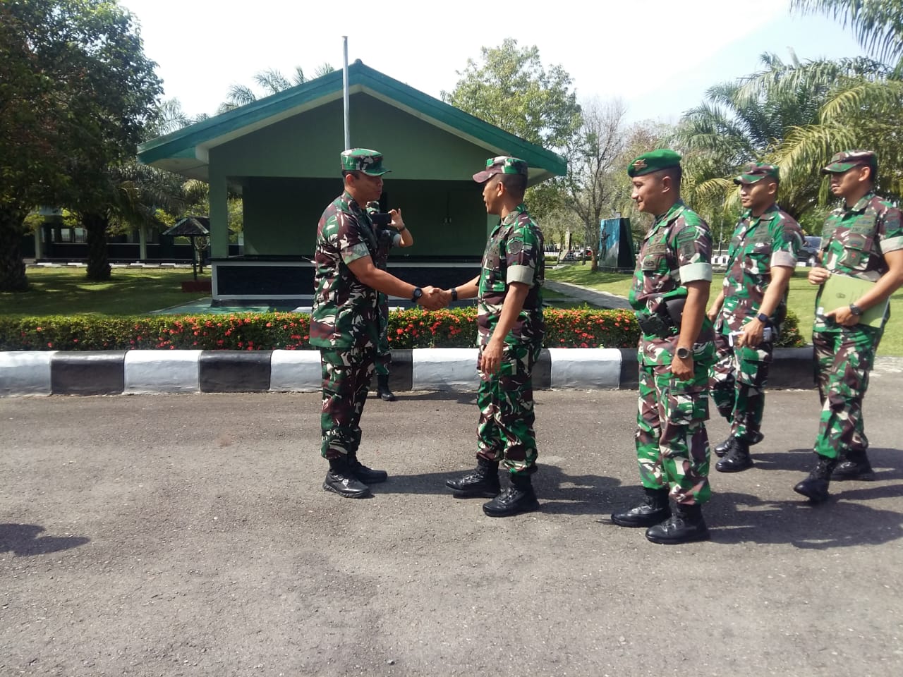 BARABAI-Komandan Kodim 1002/HST Letkol Kav Gagang Prawardhana.SIP.,M.Han mendampingi kunjungan Waaslat Kasad Bidang Renlat Brigjen TNI Yusman Madayun di Mayonif 621/Mtg Jalan Perintis Kemerdekaan Desa