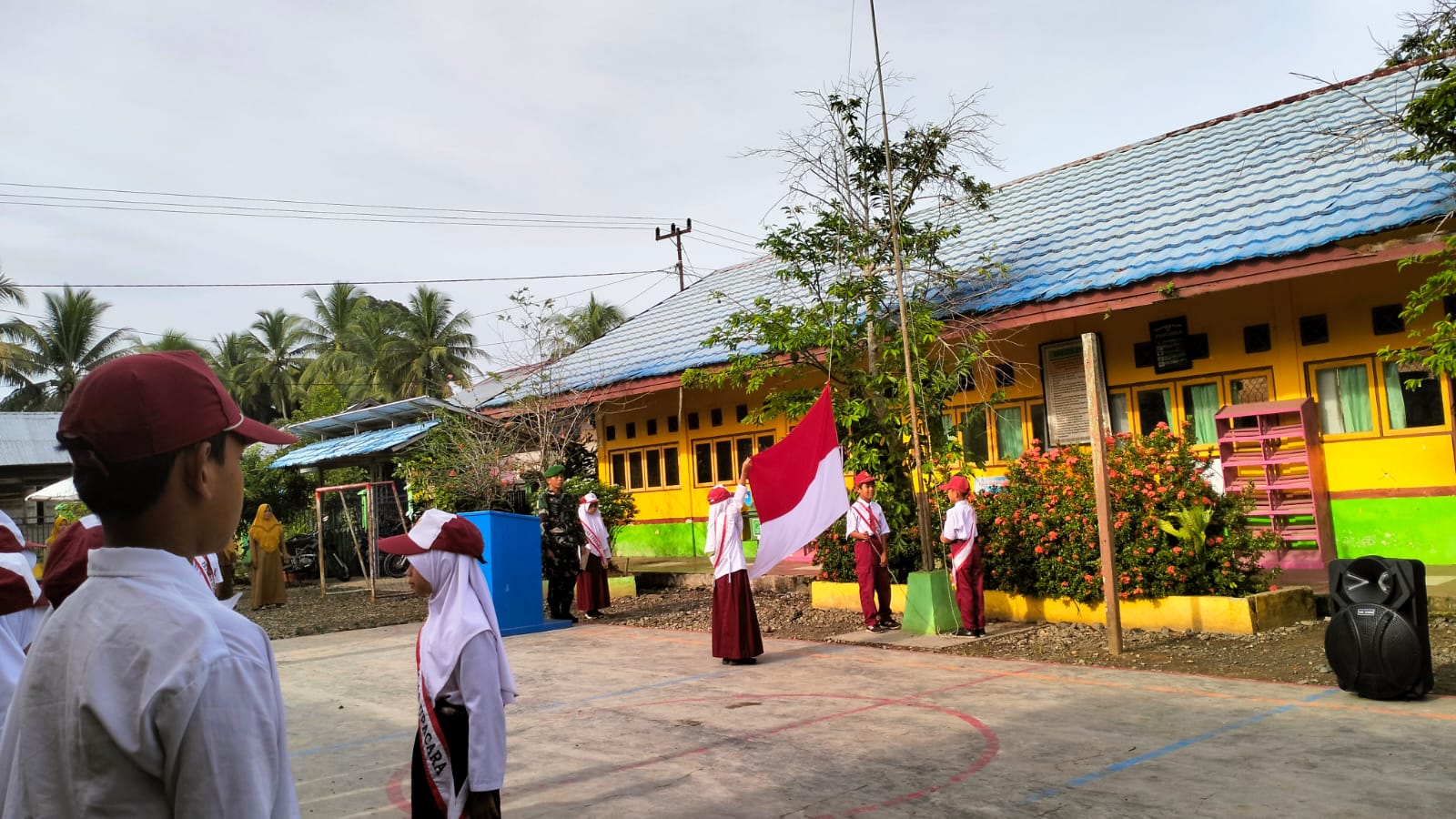 Babinsa Koramil 1002-08/Lau Tanamkan Cinta Tanah Air sejak Dini Kepada siswa SDN 2 Samhurang