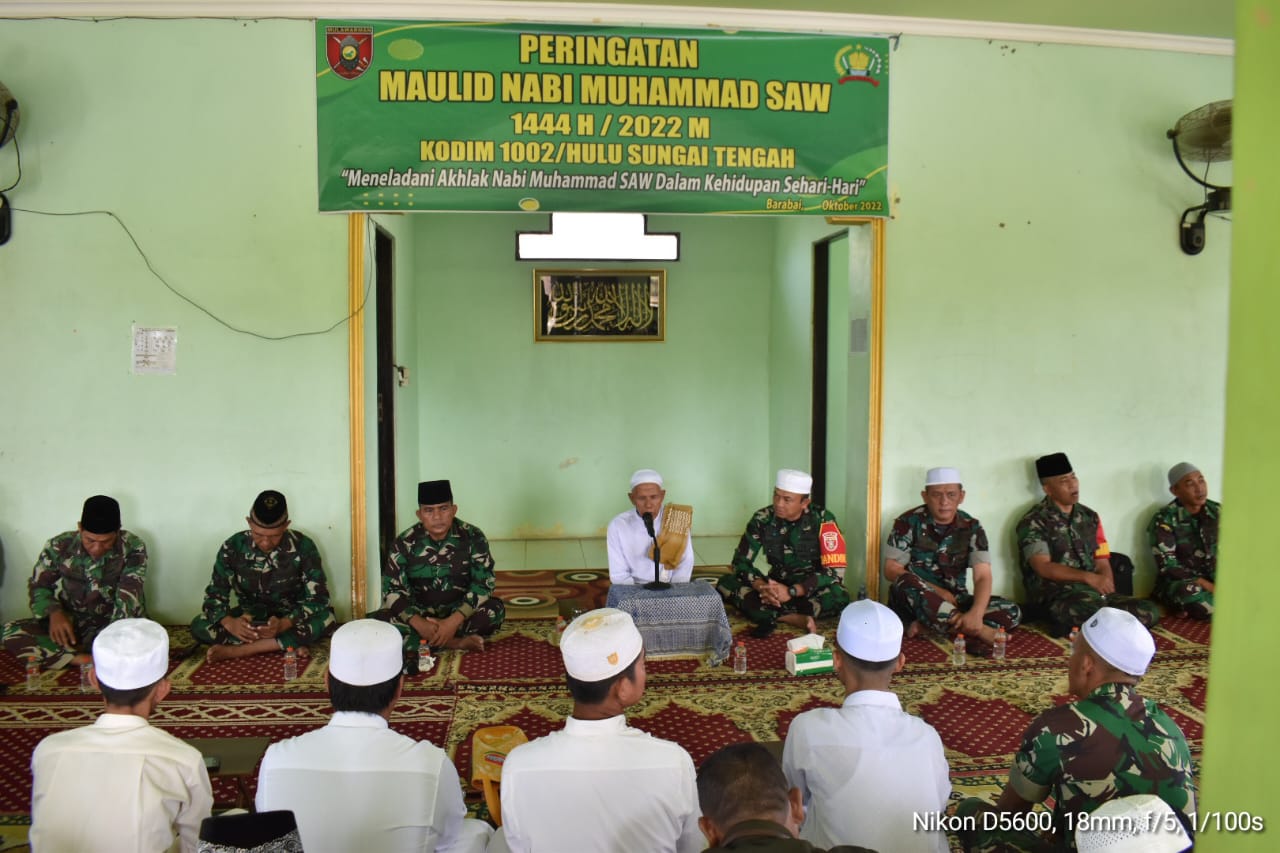 BARABAI-Kodim 1002/Hulu Sungai Tengaj menggelar Acara Peringatan Maulid Nabi Muhammad SAW 1444 H/2022 M, berlangsung di Langgar Nurul Taqwa Komplek Beringin Jalan SMP RT.008