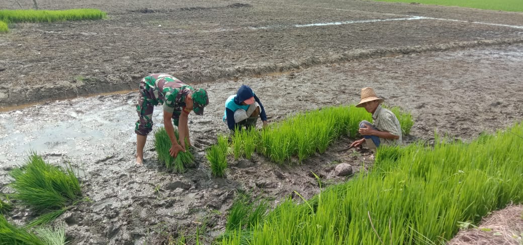 Babinsa Koramil 1002-02/Batang Alai Utara Serda Edy Karyani Bantu Warga Tanam Padi