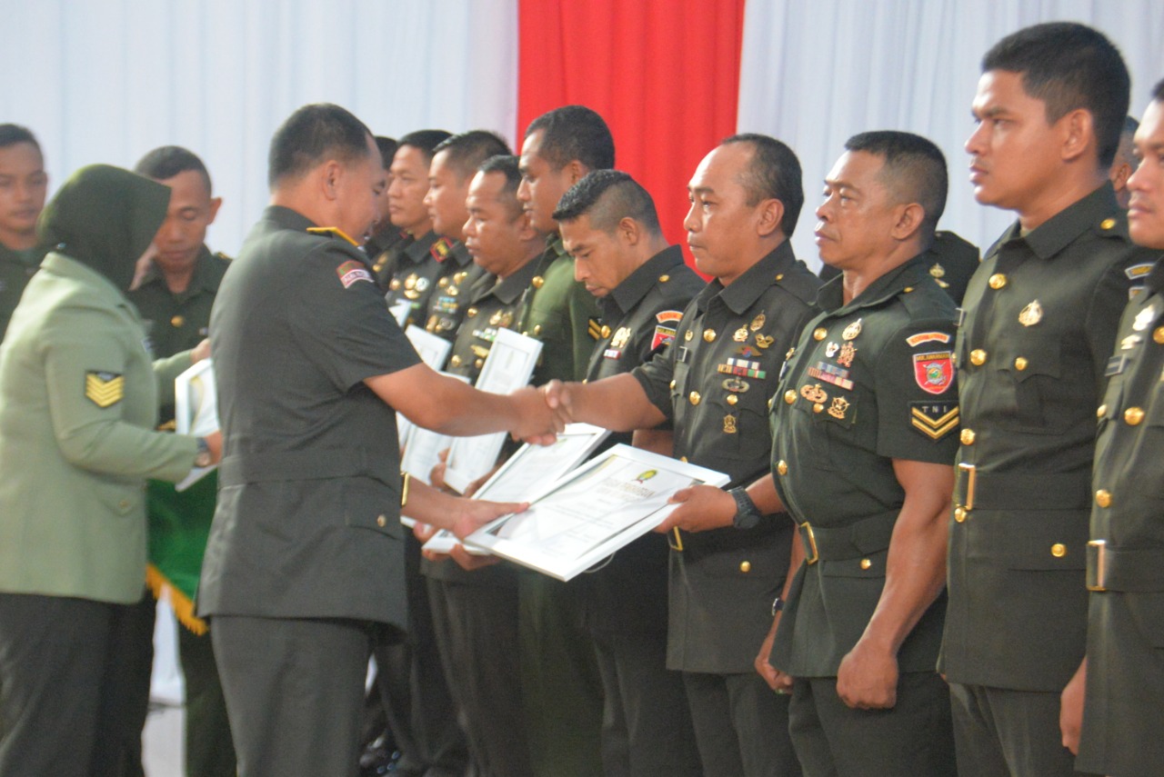 BARABAI-Salah satu Babinsa Kodim 1002/Hulu Sungai Tengah Serka Abdul Hamid Babinsa Koramil 1002-06/Barabai menerima penghargaan dari Danrem101/Antasari Brigjen TNI Rudi Puruwito,S.E.,M.M. Pemberian penghargaan tersebut