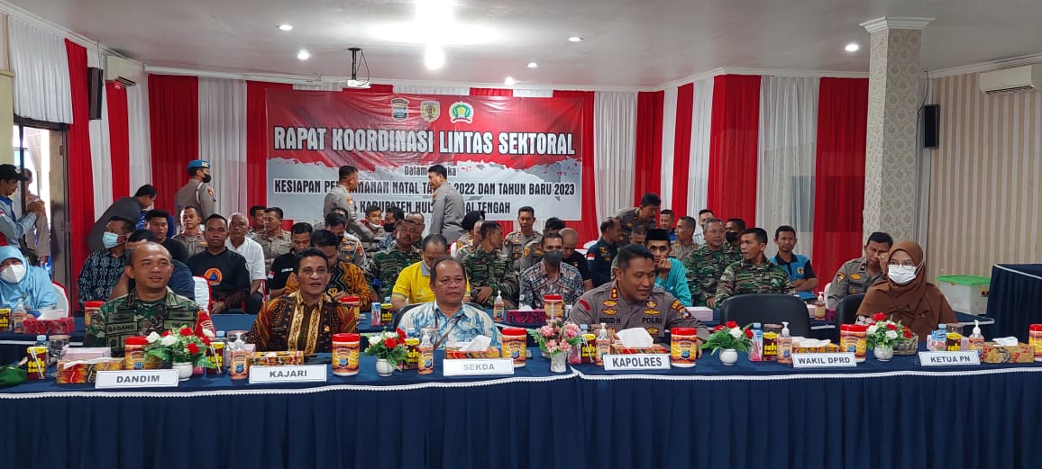 BARABAI-Kembali Rapat koordinasi lintas sektoral Hulu Sungai Tengah dalam rangka pengamanan natal 2022 dan tahun banru 2023 yang diikuti oleh TNI-Polri dan instansi terkait