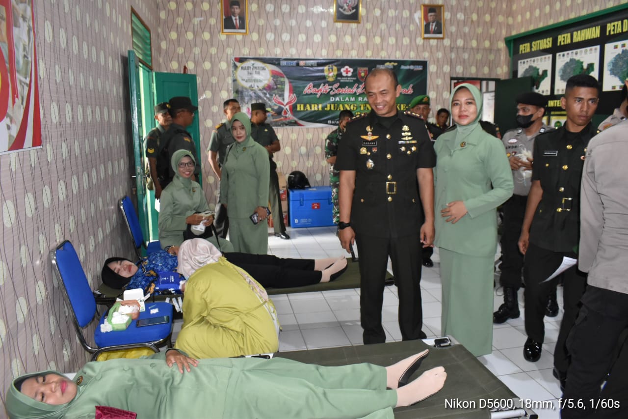 BARABAI-Bekerjasama dengan Dinas Kesehatan Kabupaten Hulu Sungai dan PMI Cabang Barabai serta Polkes 06.09.15/Barabai, Kodim 1002/HST menggelar bakti sosial donor darah dalam rangka menyambut