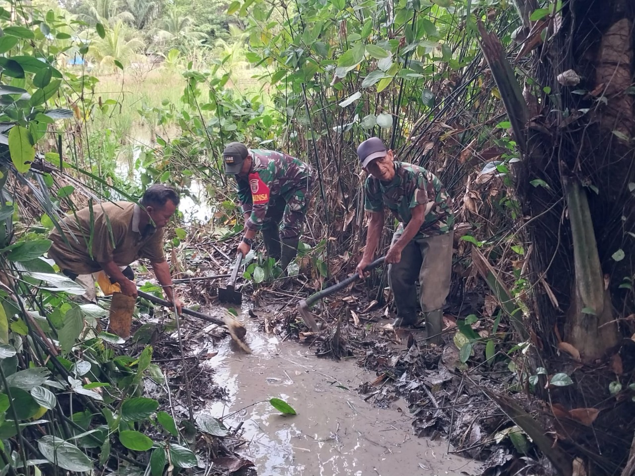 Babinsa Koramil 05/Pandawan Dan Warga Bersihkan Saluran Air