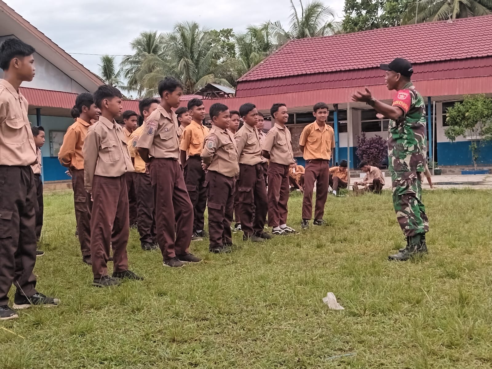 Babinsa Koramil 04/Labuan Amas Selatan Gelar Pembinaan Karakter Pramuka di SMPN 9 Pantai Hambawang Barat