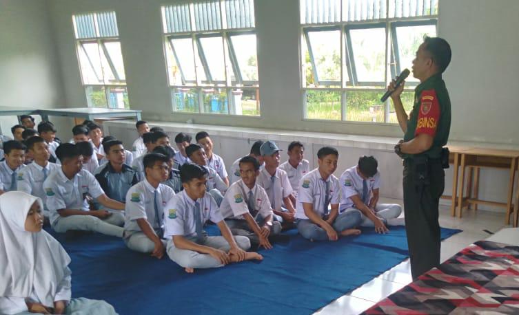 BARABAI-Babinsa Koramil 1002-08/Labuan Amas Utara Serda Agus Arahan memberikan wawasan kebangsaan kepada siswa SMA Negeri 6 Barabai dengan materi kedisiplinan.Kamis (05/01). Dihadapan para siswa,